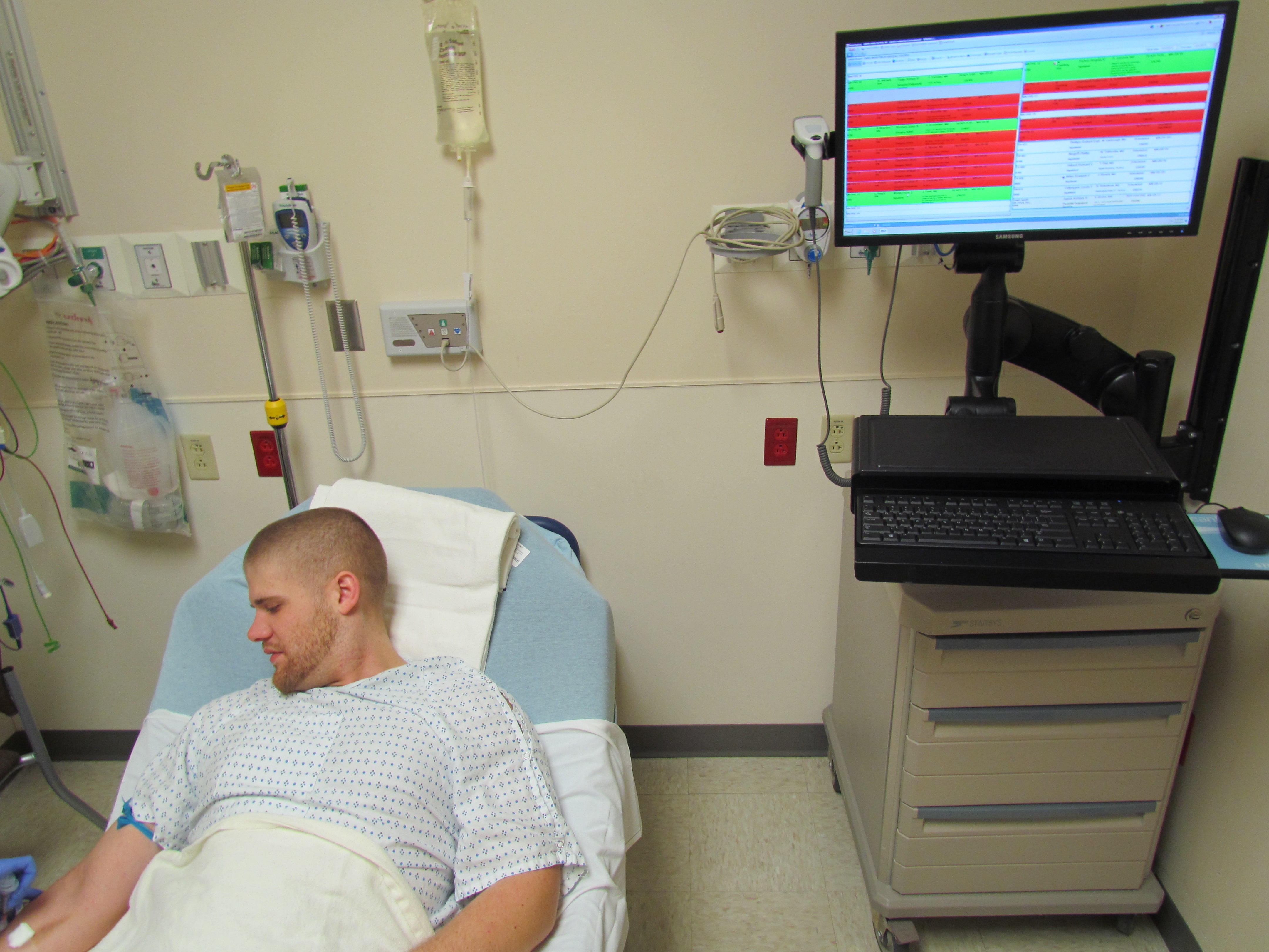 A half hour after arriving at the hospital, Phifer walks unaccompanied into the second floor pre-op wing at UAMS. Although his donor has yet to arrive, a nurse inserts a central line into the teen’s hand.
